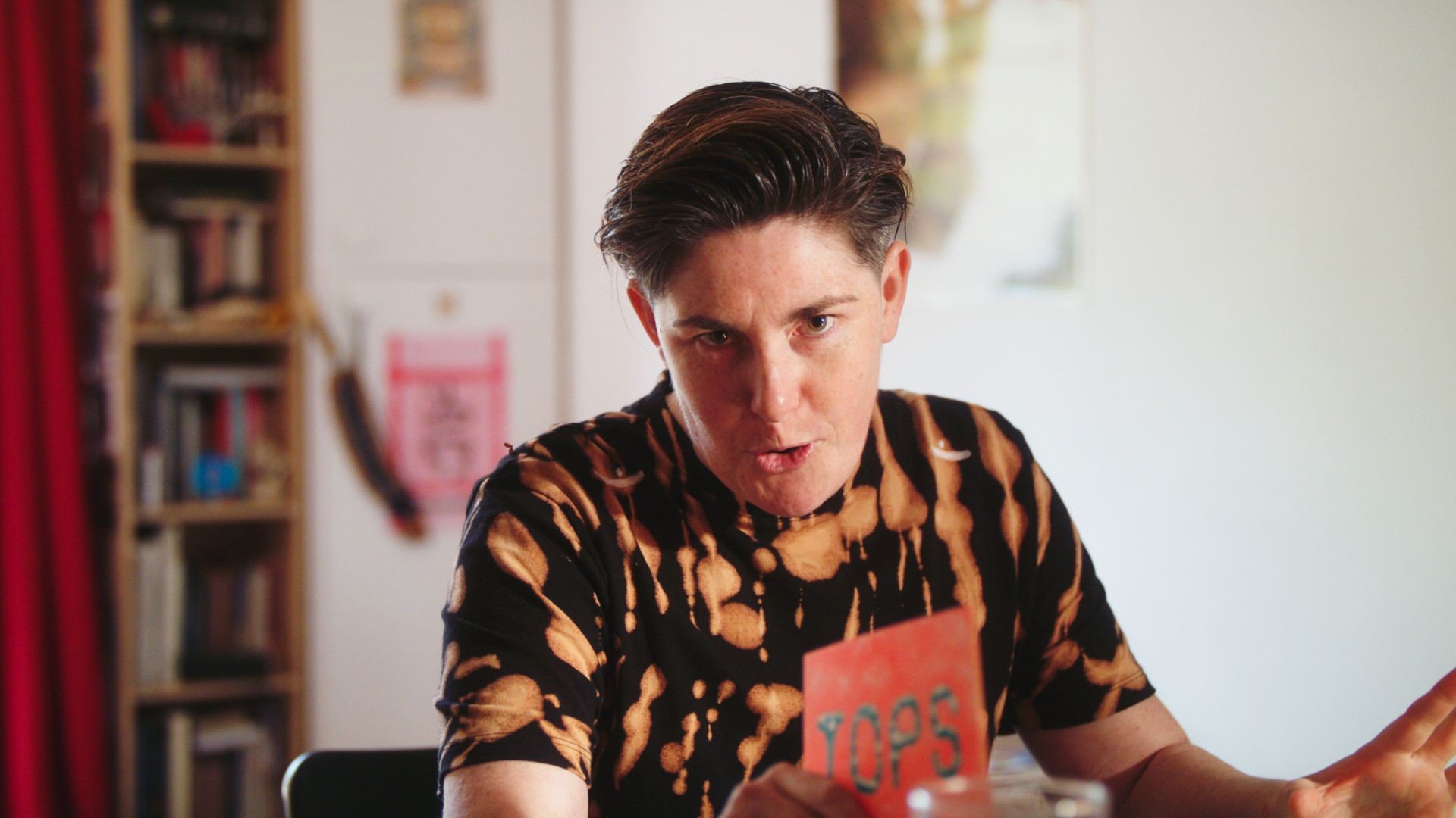 Casting themselves as an invasive TV presenter, Ames goes on a satirical odyssey through the lives and homes of four unique individuals, exploring the crucial question that defines transmasc experience, “What TOP did you want to wear after TOP surgery?”.